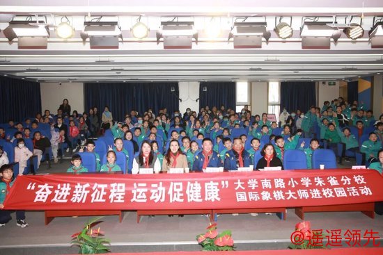 其中,余少腾一行来到西安市碑林区大学南路小学朱雀分校,该校早已将国际象棋纳入校本课程,还组建社团并定期举办定级赛、嘉年华等活动,为学生搭建切磋棋艺的平台。