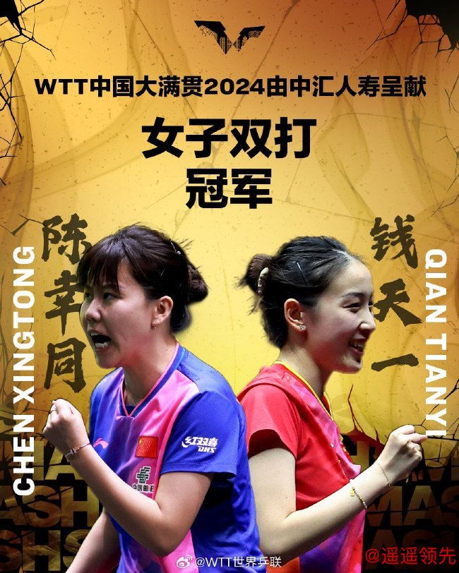 当日最后结束的女双决赛中,持外卡参赛的6号种子钱天一/陈幸同用时35分59秒,以3-1(12-10/12-10/3-11/11-7)战胜同样持外卡参赛的3号种子王艺迪/孙颖莎,夺得女双冠军。